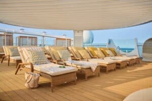 Der Spa- und Wellnessbereich wurde mit zwei neuen Wellness-Suiten, einem eleganten Nail Spa und einem Hair Spa im frischen Design erweitert. Für Suiten-Gäste stehen exklusiv die neue Suitenlounge im Rossini sowie das Sky Deck mit zwei Whirlpools, stilvollen Lounge-Möbeln und gemütlichen Cabanas bereit. Damit entsteht ein noch angenehmeres Erholungsangebot, das den Aufenthalt an Bord besonders macht.