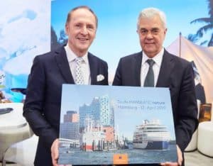 Im Rahmen der ITB verkündete Karl J. Pojer, Vorsitzender der Geschäftsführung von Hapag-Lloyd Cruises, heute: Der erste der beiden Neubauten des Kreuzfahrtveranstalters wird am 12. April 2019 vor der Kulisse Hamburgs auf den Namen Hanseatic nature getauft. „Wir werden mit der Taufe den Geist der Expedition in den Norden Deutschlands bringen.“, deutet Pojer an. Auch Senator Frank Horch von der Hamburger Behörde für Wirtschaft, Verkehr und Innovation sieht der besonderen Taufe eines Expeditionsschiffes in der Hansestadt mit Freude entgegen: „Mit der Taufe im Heimathafen unterstreicht Hapag-Lloyd Cruises einmal mehr die enge Verbundenheit zu Hamburg. Damit wird der Hafen wieder seinem Ruf gerecht, einer der erlebnisreichsten Stadthäfen der Welt zu sein. Hamburg freut sich auf das neue Flottenmitglied von Hapag-Lloyd Cruises.“