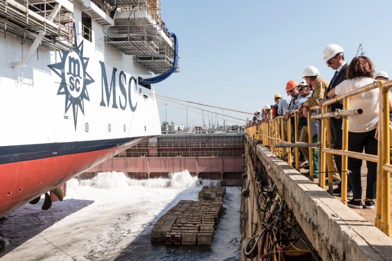 Dock wird geflutet (Bild MSC Kreuzfahrten)