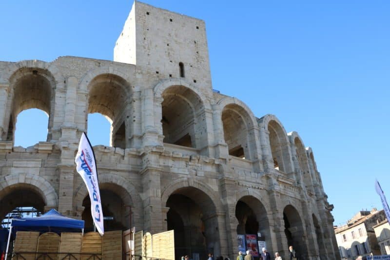 5. Tag: Arles-Avignon: Erstens kommt es anders und zweitens als man denkt…. Eigentlich wären heute und morgen die Besuche von Arles und Avignon geplant gewesen, doch wie es in Frankreich öfters vorkommt, ist ein Streik angesagt. Diesmal wollen die Schleusen-Wärter die Arbeit niederlegen. Damit wir trotzdem zeitig in Lyon ankommen und niemand Flug, Bus oder Zug verpasst, stellt nicko cruises das Programm kurzfristig um. Der geplante Tagesausflug von Avignon entfällt und wird in einem Nacht-Ausflug umgewandelt (Avignon à nuit ist allerdings auch schön und bezaubernd). Aber der Reihe nach: Am morgen früh startet der Tag mit einem Stadtrundgang durch Arles. Arles bietet ausser einem nicht ganz so grossen Amphitheater nicht besonders viel. Zufällig ist aber gerade an unserem Besuchstag der zweimal jährliche Stierkampf angesagt – dieser endet glücklicherweise ohne tödlichen Ausgang für den Stier. Aber…. Die Stiere werden von Kids mit Füssen getreten, geschlagen oder am Schwanz gerissen und durch die Straßen getrieben. Meine Sache ist das absolut nicht, dem Publikum gefällts.