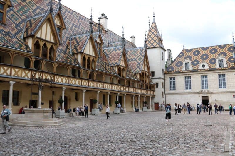 Nicht wirklich fürstlich war die Unterkunft der Kranken im Hôtel Dieu, dem Krankenhaus aus dem 15. Jahrhundert. Fürstlich dafür der Anblick der Herberge aus flämischer Gotik in Beaune. Das Krankenhaus mit den farbenprächtigen Dächern aus Terracotta beherbergte bis 1971 bis zu 100 Kranke. Heute wird es teilweise als Altersheim genutzt, kann aber auch besucht werden.