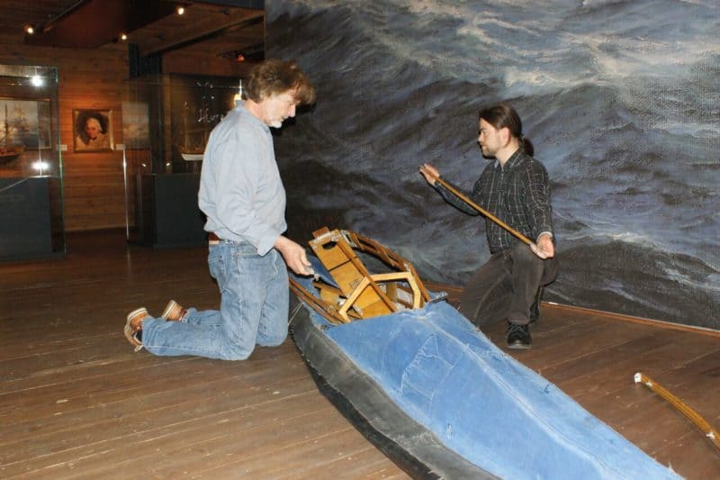 Arved Fuchs bautet sein Kajak im Internationalen Museum Hamburg persönlich zusammen (Bild Damian Moran Dauchez)
