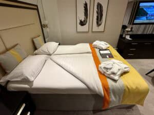 Abgerundet wird der Aufenthalt durch praktischen Bordservice wie kostenloses Free WiFi, Gepäckservice, Wäscheservice und einem vielfältigen Audio-System für die Landtouren. 24 Stunden am Tag steht Gästen Wasser, Kaffee und Tee zur Verfügung – Komfort, der keine Wünsche offenlässt.