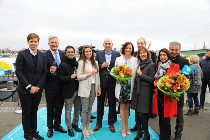 Die Taufpatin Elena Kramer-Miret, Gattin des Phoenix-Geschäftsführers Jörg Kramer, gab Schiff, Crew und Passagieren herzensgute Wünsche mit auf die Reise und ließ dann die obligatorische Champagnerflasche an der Bordwand perfekt zerschellen. Zuvor hatte Pfarrer Apholte für MS Alena den christlichen Segen vorbereitet und der Bonner Shanty Chor begleitete den Akt mit traditioneller Seemannsmusik.