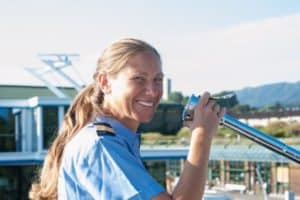 Manuela Balàzs ist die erste Frau, die das Ruder der beiden nostalgischen Raddampfer auf dem Zürichsee übernimmt (Bild Zürisee Schifffahrt)